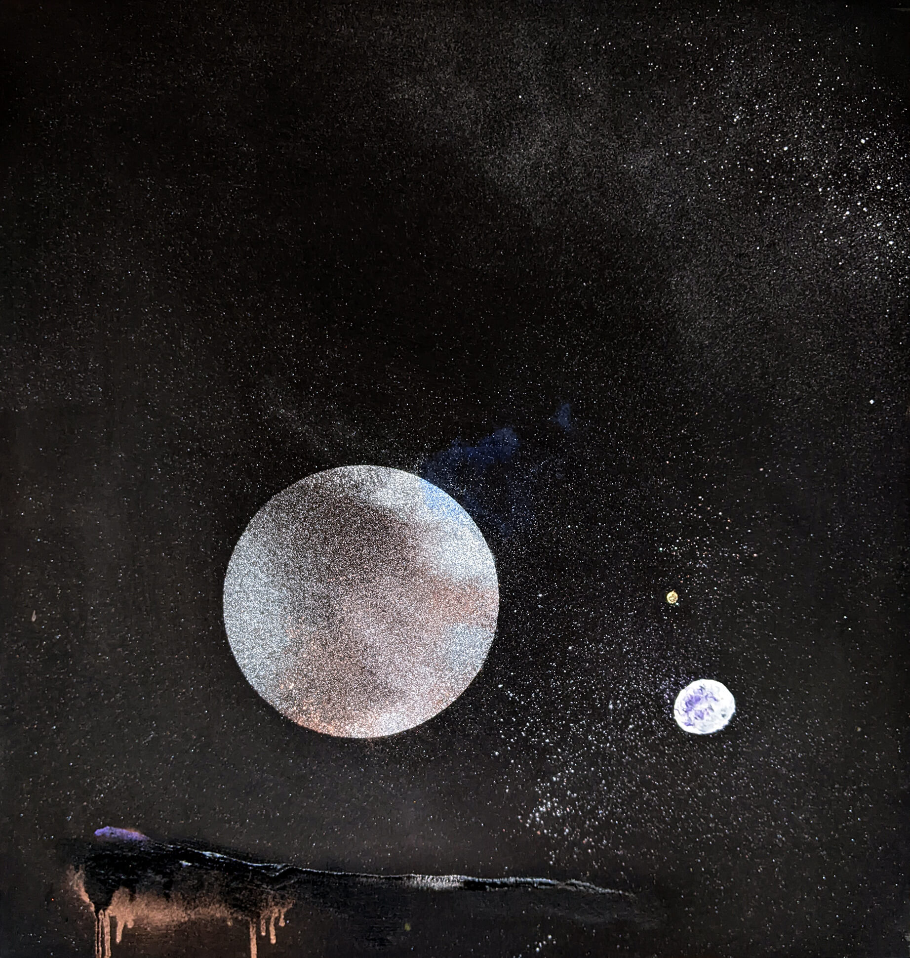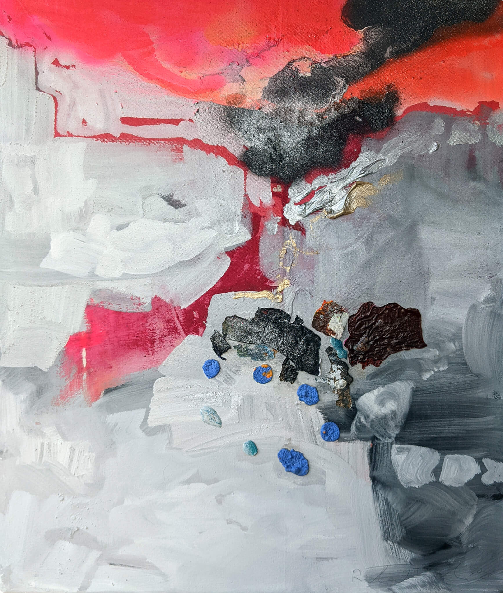 WEJI RES, 50 x 60 cm | Jahr 2020 – Öl, Acryl, Kreide, Sand, Sprühlack, Pigmente auf Leinwand